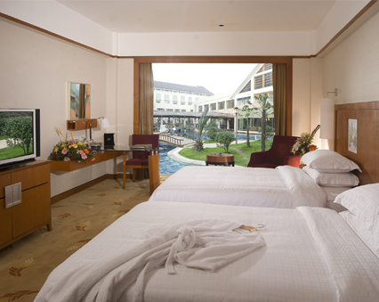 豪華全景客房:面積45平米,室外私人陽臺(tái)讓每一位入住客人零距離享受湖光山色,也可以在寬敞的浴室泡澡時(shí),看著電視,享受全方位的住宿享受。
