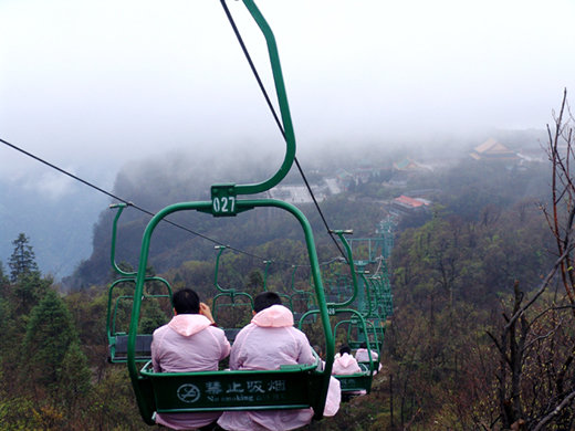坐在纜車上,清透的山風(fēng)伴著絲絲的霧氣把人徹頭徹尾包起來,耳邊是隨著纜車移動的悅耳的山歌,遠(yuǎn)處則是一望無際的山野,更讓人興奮的是,能夠看見只能在飛機(jī)上見到的云海奇觀。這一切,讓人不禁縱情尖叫或是放聲歌唱,所有的旋律組成了一首快樂的纜車進(jìn)行曲。