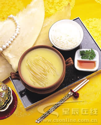 據(jù)記者打探到的可靠消息,近期天璽大酒店推出的譚家菜,由譚門正宗高廚原班團(tuán)隊主理,為食客打造絕無僅有的美味佳肴。譚門高廚博采各方菜點之長,并根據(jù)湖南人口味和餐廳的特點進(jìn)行了調(diào)整和創(chuàng)新,以海味魚翅烹制為主,其代表菜有:黃燜魚翅撈飯、酥皮南瓜翅、濃汁魚翅、木瓜燴魚翅、紅燒鮑魚、清湯菜膽翅等,其中又以黃燜魚翅撈飯最為上乘,而酥皮南瓜翅、木瓜燴魚翅則是首次登陸湖南地區(qū)。“黃燜魚翅”首先是用水將上等的 “呂宋黃”發(fā)足、發(fā)透,再用母雞、肥鴨吊出上好鮮湯,加上金華火腿的中鋒,將魚翅文火達(dá)六,七個小時,然后調(diào)以干貝汁、火腿末和雞油等各種佐料,精工細(xì)作之后的“黃燜魚翅”形狀完整,色澤金黃,鮮美無比,配上一碗香糯的米飯,定會讓你味蕾大開,沁人的美味在嘴里陶醉搖蕩!難怪有人贊嘆為“人類飲食文明,到此為一頂峰”。