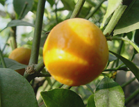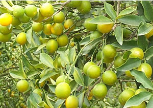 金柑是我國(guó)的傳統(tǒng)名果之一,在華南數(shù)省和長(zhǎng)江流域均有分布。我省藍(lán)山縣栽培金柑已有140多年的歷史,面積達(dá)2000多畝,為我省重要的金柑生產(chǎn)基地。 藍(lán)山金柑,又名藍(lán)山金彈,為大果型良種,具有四大突出優(yōu)點(diǎn):果實(shí)佳,用途廣,耐貯運(yùn),銷路好,樹(shù)形矮小,分枝密集;便于管理,適于密植;生長(zhǎng)快,結(jié)果早,產(chǎn)量高;受凍后恢復(fù)生長(zhǎng)結(jié)果快,經(jīng)濟(jì)損失小,因而久負(fù)盛名。 金柑果實(shí)。有特殊芳香,營(yíng)養(yǎng)豐富,既可生食,又宜加工成金錢桔餅、金錢花或金錢罐頭等;食之有順氣潤(rùn)肺、化痰止咳、促進(jìn)消化、強(qiáng)壯身體之功。對(duì)治療氣管炎和哮喘病有良好效果,深受國(guó)內(nèi)外市場(chǎng)歡迎。